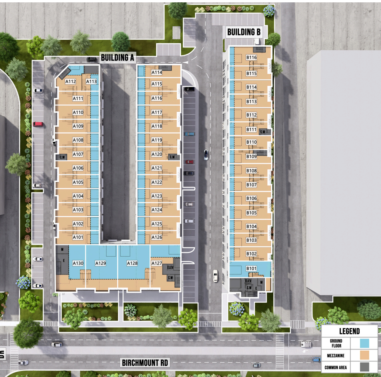 Set for completion in Fall 2026, the development will feature 46 industrial units with concrete mezzanines and 282 modern work space units, thoughtfully designed to meet the needs of a wide range of businesses.